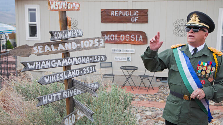 Molossia共和国已经在内华达州境内安静地成为一个官方的,独立的主权国家超过雷竞技体育app四十年.总统,Kevin Baugh阁下和他的妻子/第一夫人宣布他们的财产是一个微型国家代顿在1雷竞技体育app977年,内华达州。这个国家最初位于俄勒冈州的波特兰市,被称为沃尔德斯坦大共和国,由鲍的童年犯罪伙伴詹姆斯·斯皮尔曼国王统治。但1995年凯文·鲍(Kevin Baugh)总统登上王位后,他宣布实行军事独裁,并将国家重新命名,并将其迁至内华达州。雷竞技体育app