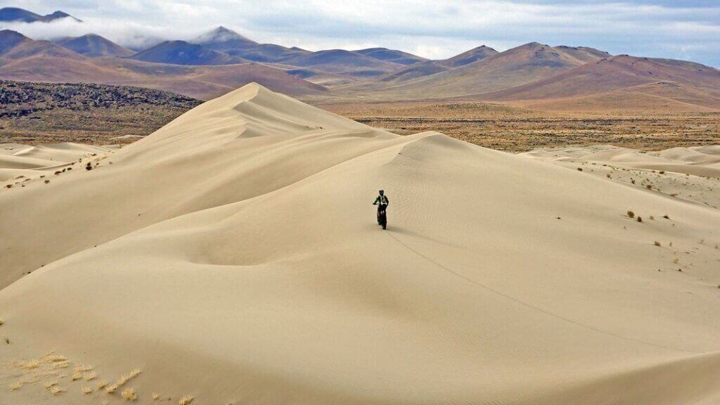 过去的6个月里,我们在内华达州来回奔波。雷竞技体育app我们去了沙山和Winnemucca沙丘骑沙。砂山非常棒,但大部分都是高高的沙丘。它们很适合骑车下山,但骑车上山太陡了,所以有很多“徒步自行车”。Winnemucca沙丘另一方面,他们有很大的流动。如果最近有降水,你基本上可以在任何地方骑上骑下。沙丘“永远”地延伸着。你可以全程在沙滩上骑行40英里。而且,光是在那里就很特别。感觉就像你被传送到了塔图因的沙漠(对你来说)星球大战像我这样的书呆子)。