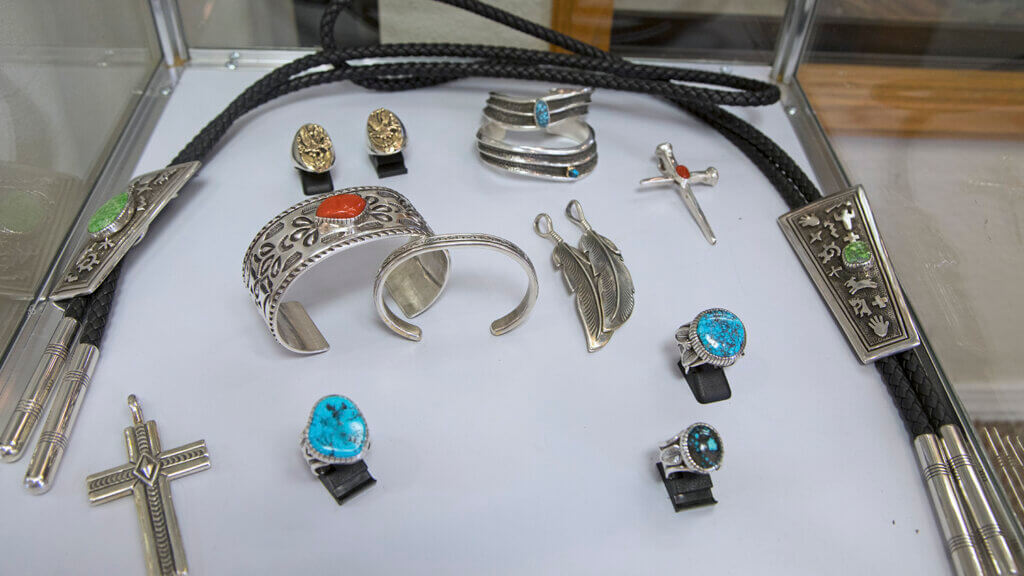 你会发现博洛领带、皮带扣、手表、沙画和各种各样的珠宝,包括由银匠和金匠大师制作的作品,这些都是美国土著艺术中最精美的埃里克Begay.