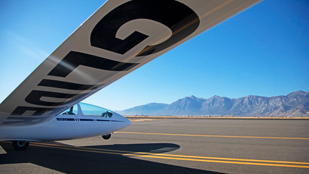 飞向天空驾驶滑翔机在美丽的卡森山谷上空。寂静是神奇的,从鸟瞰太浩湖的景色是无与伦比的。