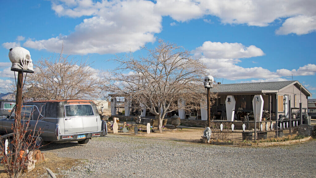 最后但绝不是最不重要的,让自己去帕伦普参加一个只有预约才能参观的旅行Coffinwood这里是由住宅改造而成的商业场所和路边景点,经营者是一对可爱的夫妇,他们很喜欢棺材(这一点毫不讳言)。在比蒂的大街上有一家戈德威尔露天博物馆这是一个户外沙漠艺术公园,在这里,你可以接触到包括“戈德威尔幽灵”在内的传奇雕塑。