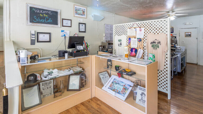 如果你想用一件有趣的纪念品来纪念你的皮奥切冒险,Historic Silver Café还设有一个小礼品柜台,里面摆满了t恤、马克杯、当地历史书籍、原始艺术和其他庆祝当地地标的纪念品,比如汤普森歌剧院,历史瑰宝剧场,以及更多。