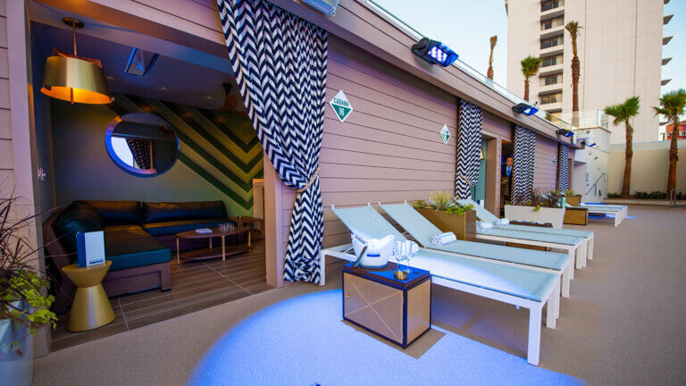 如果你还没有在体育博彩上看足够多的比赛,体育场游泳应该可以做到这一点。在三个不同楼层的六个泳池中,有一个可以完美地欣赏40英尺高的高清屏幕和你周围的每个人。体育场游泳有4000人的容量,包括337个躺椅休息室,30个私人小屋和38个日间床位,一年365天开放。